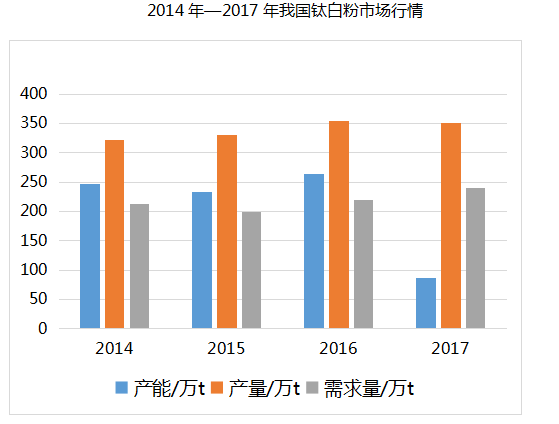 近幾年來鈦白粉行業遭遇了產能過剩打擊,而中國顯得尤為明顯。中國目前已經成為世界第一大鈦白粉生產國,但中國鈦白粉產能嚴重過剩,產品供大于求,鈦白粉原料供應嚴重依賴進口,產業發展與環境保護的矛盾日益尖銳,已經制約了中國鈦白粉產業的發展。2017年國內的環保督查也使得鈦白粉行業淘汰掉大量的落后產能,不排除后期持續淘汰落后產能。