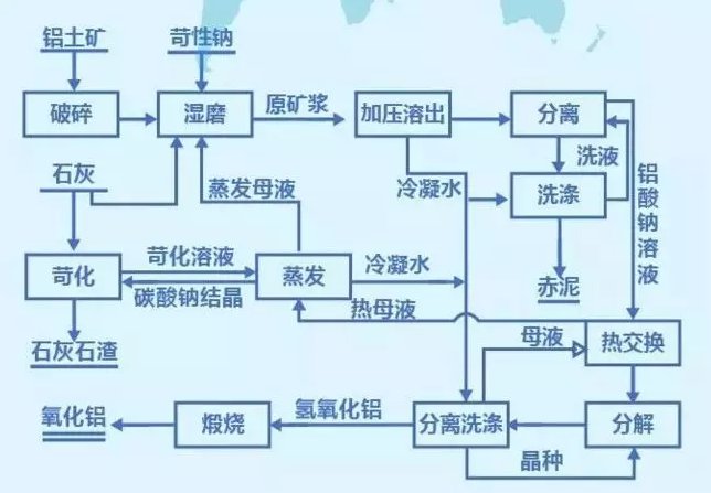 每個工廠由于條件不同,可能采用的工藝流程會稍有不同,但原則上它們沒有本質區別。拜耳法工藝的基本生產過程大致分為以下主要工序: