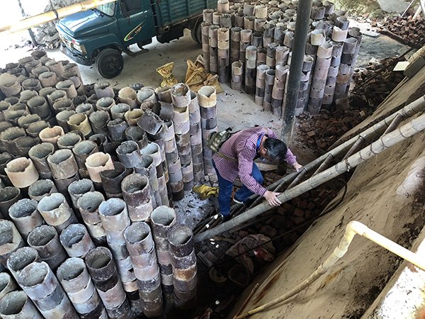 很快,崇左市、江州區(qū)相關(guān)部門負(fù)責(zé)人及企業(yè)負(fù)責(zé)人趕來。崇左稀土公司生產(chǎn)副總經(jīng)理王朝鵬承認(rèn),“這種土窯肯定是最落后的工藝,現(xiàn)在離子稀土礦已有隧道窯、回轉(zhuǎn)窯,效率越來越高了。”