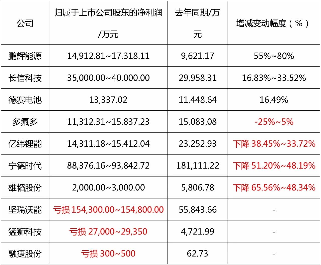 從上表可以看出10家公司中只有三家歸屬于上市公司股東的凈利潤(rùn)有所增長(zhǎng),4家公司下降,剩余3家公司出現(xiàn)不同程度的虧損。就連動(dòng)力電池的龍頭企業(yè)寧德時(shí)代歸屬于上市公司股東的凈利潤(rùn)也大幅下降。