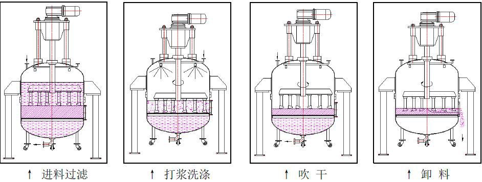 過濾、洗滌“二合一”設備是在過濾、洗滌、干燥“三合一”設備的基礎上簡化后的產品。在一個密閉容器內完成過濾、洗滌二道工序,主要用于醫藥行業,解決了易燃、易爆、有毒產品的連續生產,特別適應洗滌效果要求較高的物料,并且能夠減輕操作過程的勞動強度,減少了成品的損耗。
