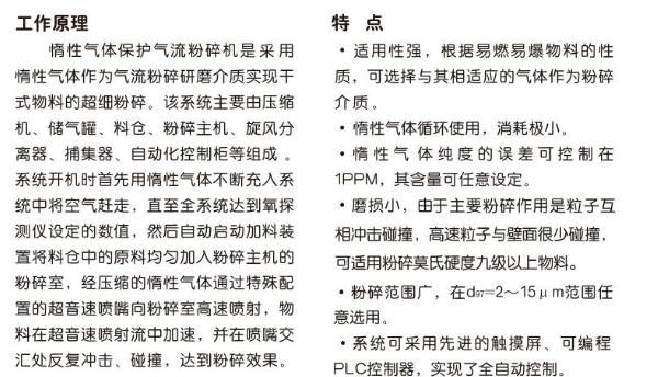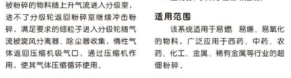對易燃、易爆物料可用惰性氣體作為工作介質(zhì)粉碎。