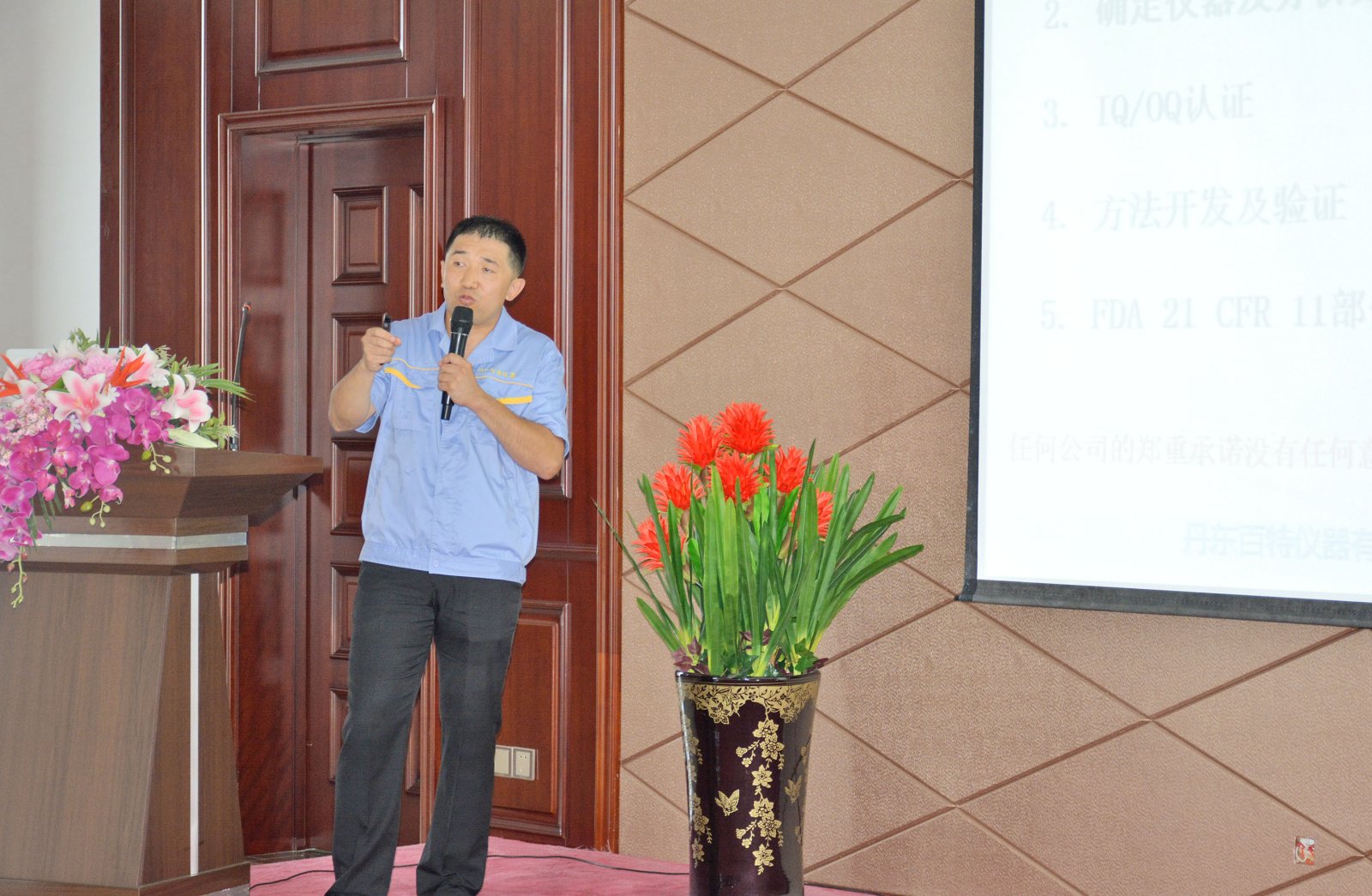 參觀結束后,百特技術總監李雪冰博士以《百特粒度儀器的生物制藥故事》為題向各位專家匯報了百特在儀器技術性能提升和應用研究方面取得的成果,并就一些制藥領域的特殊和前沿問題進行了咨詢和交流。
