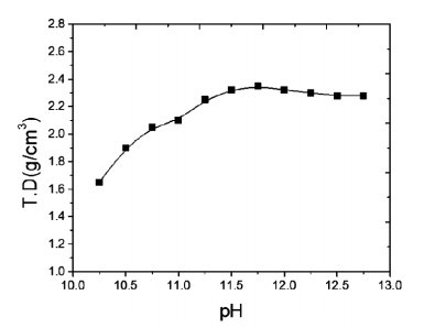 隨著沉淀pH值升高,一次粒子逐漸細化,顆粒球形度變好,前驅體樣品振實密度逐步升高。