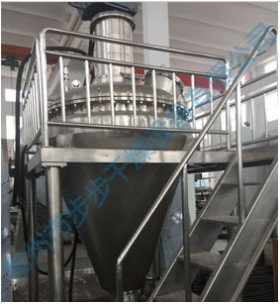 錐形真空混臺(tái)干燥機(jī)中的物料在容器內(nèi)受熱是緊貼容器內(nèi)壁,由螺旋槳葉自下而上旋轉(zhuǎn)至容器上部,然后沿主軸呈渦流向下。物料在整個(gè)干燥過程中始終在分散運(yùn)動(dòng)。物料的運(yùn)動(dòng)狀態(tài)保證了物料的均衡受熱。