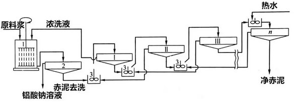 鋁土礦溶出后,形成赤泥和鋁酸鈉的混合漿液,漿液必須經過稀釋才能沉降或過濾使赤泥和鋁酸鈉溶液分離,分離后從鋁酸鈉溶液中生產出氧化鋁,赤泥需洗滌,降低Na2O、Al2O3通過赤泥附液途徑的損失。