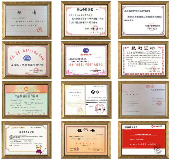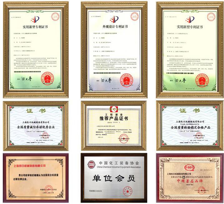 本公司先后取得了ISO9001國際質量管理體系認證,原化工部監制產品,中國工程建設推薦產品,產品質量檢驗合格證,榮獲九項國家專利產品,全國星火杯創造發明金獎,國家技術監督局統一抽查檢測合格證號:國家檢認字048號,NO98019,是原化部中國化工裝備協會、質量檢測協會、機械動力技術協會會員等各種榮譽證書。 為更好、更高效的服務于國內外市場,設立多個生產基地,建立混合機研發中心,滿足不同層次用戶的需求。上海凱日(kairi)始終以值得信賴、不斷創新的品牌個性,為國內外客戶創造新的價值。 上海凱日專業——混合機制造,質量第一、誠信第一、用戶至上。 廣泛應用于化工、醫藥、染料、建材、食品、添加劑等行業,各種粉粒及粉液混合的新型高效混合設備。