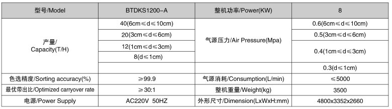 采用高清全彩鏡頭,實現物料紅、綠、藍三種顏色信息全面獲取,深度識別微小而精細的普通色選機所無法選別的雜質。