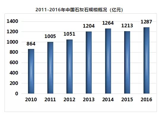 2011-2016年中國石灰石規(guī)模概況(億元) 數(shù)據(jù)來源:智研咨詢
