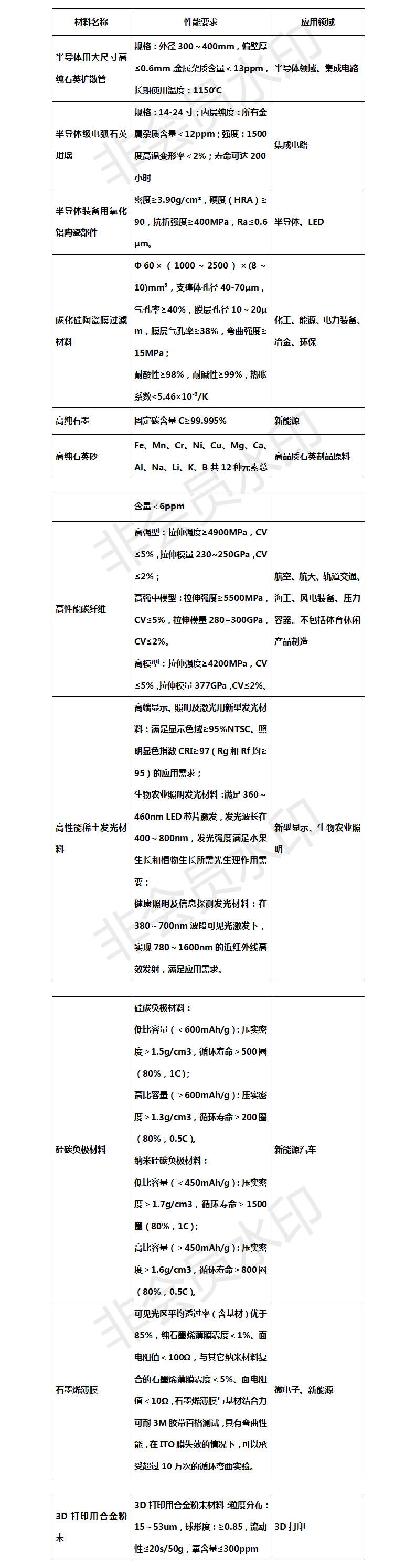 中國粉體網訊 2017年以來,工業和信息化部聯合財政、保監部門開展了重點新材料首批次應用保險補償機制試點工作。為做好2018年首批次試點工作,工信部組織修訂了《重點新材料首批次應用示范指導目錄》,并于近日予以了公示。中國粉體網小編帶您一覽該目錄中部分重點新材料。