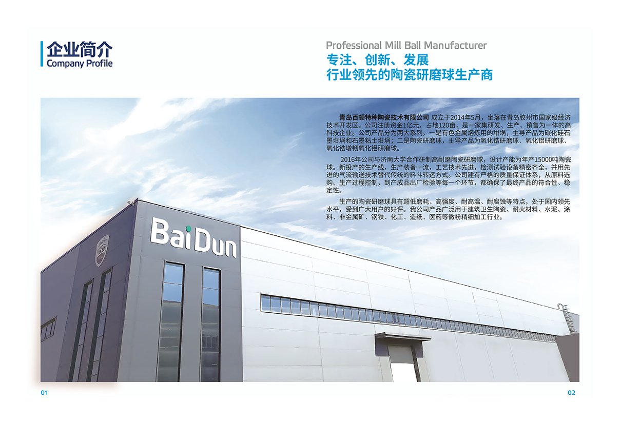 青島百頓特種陶瓷技術有限公司成立于2014年5月,坐落在青島膠州市國家級經濟技術開發區。公司注冊資金1億元,占地120畝,是一家集研發、生產、銷售為一體的高科技企業。公司產品分為兩大系列,一是有色金屬熔煉用的坩堝,主導產品為碳化硅石墨坩堝和石墨粘土坩堝;二是陶瓷研磨球,主導產品為氧化鋯研磨球、氧化鋁研磨球、氧化鋯增韌氧化鋁研磨球。