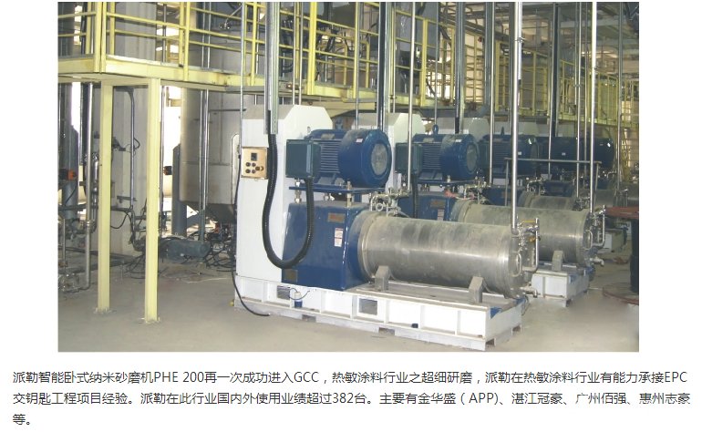廣東派勒智能納米科技股份有限公司專注于分散和濕法納米研磨技術研究!派勒業務領域包括“納米技術”和“先進材料”。“納米技術”業務目前覆蓋油墨和涂料、化學品、無機材料/礦物、陶瓷技術、農藥懸浮劑、硅酸鋯、木器漆、汽車漆、印刷油墨、顏料、納米級新材料及氧化物超細分散與研磨設備的制造;生命科學、磷酸鐵鋰電池、陶瓷噴墨、染料、激光碳粉/彩粉以及一站式研磨及分散集成解決成套方案等業務部門則整合為“先進材料”部 。