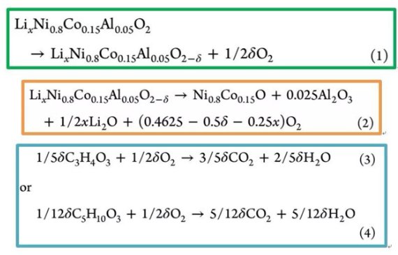 類似,作者還細致分析NCM鋰離子電池的DSC產熱行為。DSC結果顯示NCA和NCM的熱穩定性不同,其中NCA巖鹽相轉變溫度是240℃左右,而NCM則在310℃左右,表明NCM的熱穩定性要高于NCA。