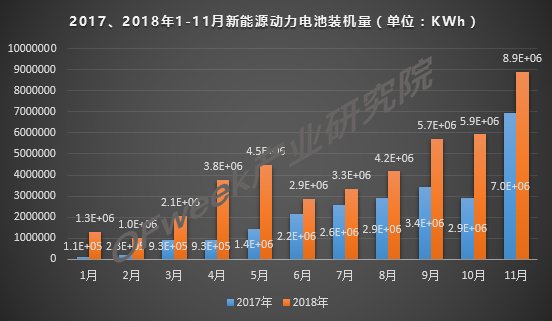 中國粉體網(wǎng)訊 新能源汽車強(qiáng)勁的增長勢(shì)頭帶動(dòng)動(dòng)力電池產(chǎn)業(yè)的持續(xù)高漲,OFweek產(chǎn)業(yè)研究院分析數(shù)據(jù)顯示,2018年11月,我國新能源汽車動(dòng)力電池裝機(jī)量約8.91GWh,環(huán)比增長50.16%,同比增長28.14%,2018年1-11月累計(jì)裝機(jī)量約為43.59Wh。