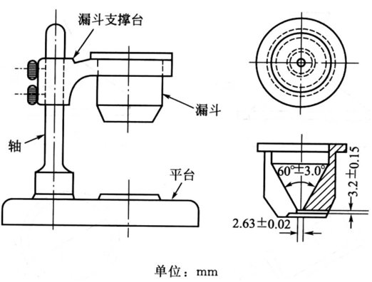 流出速度是將物料加入漏斗中測定全部物料流出所需的時間來描述,其測定裝置見圖3所示。