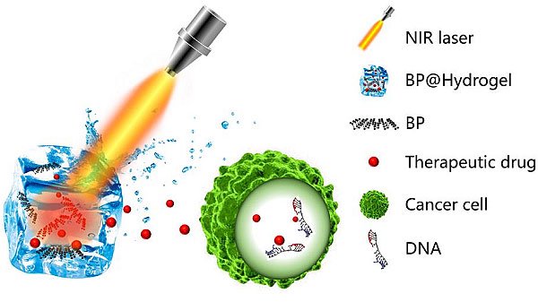 方式四:近紅外光響應的黑磷水凝膠材料 用于抗癌藥物的負載和可控釋放