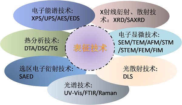 從納米材料的表征技術角度分類的話,見圖1。不過為了讓大家更好的理解這些表征技術各自發揮的作用,我們從納米材料的角度來分別介紹,主要從納米材料的組成成分、形貌、粒度、結構等方面進行簡單介紹。