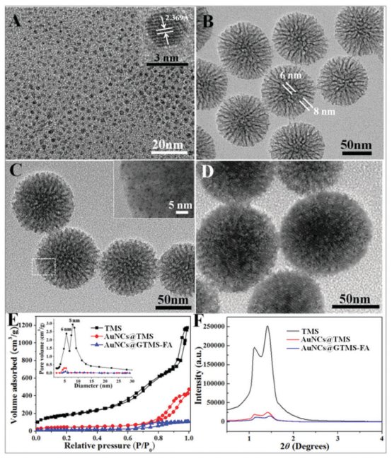 圖6 納米材料的(A-D) TEM圖、(E)氮吸附脫附等溫線和SAXRD圖[6]。