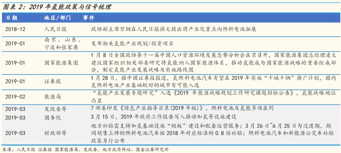 我國從2018年底開始重點推動燃料電池行業的發展,特別是2019年政府工作報告寫入了推動加氫等設施建設的內容。
