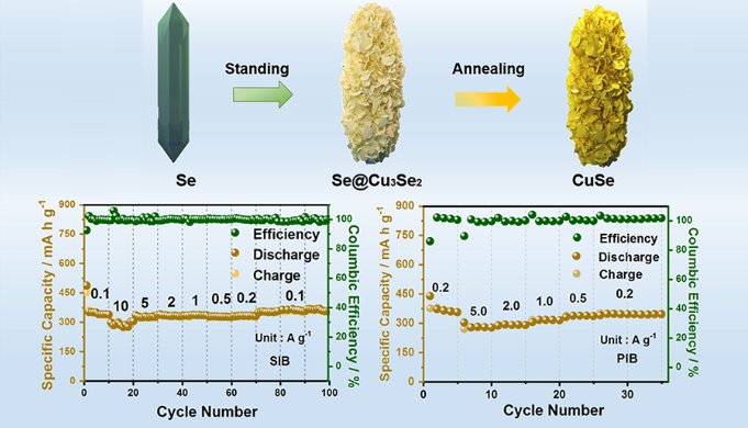 過渡金屬硒化物可以與Na+或K+發生多電子轉換反應,因而具有較高的理論比容量。又由于材料帶隙小,電子電導率更高,有利于電化學過程中電荷的快速傳導。但是,目前鈉和鉀離子電池的研究尚處于起步階段,過渡金屬硒化物是否可用尚未可知,其儲能機制更有待深入探討。此外,硒化物在有機電解液中溶解的問題一直是影響材料循環穩定性的瓶頸問題。更重要的是,由于金屬鉀活潑性更強,電解液對金屬的腐蝕也成為鉀離子電池亟待解決的難題。