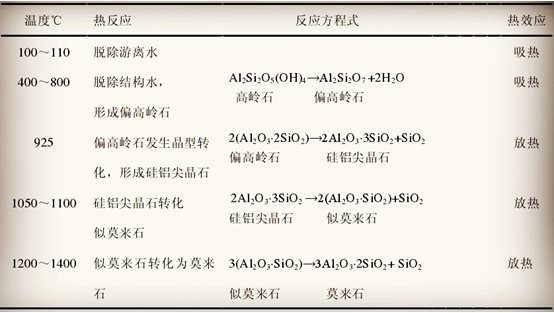 高嶺土在加熱過程中會發生脫水、分解、析出新物相等物化變化,較為復雜,一般認為,高嶺土在加熱過程主要包括兩個階段:脫水階段和脫水后產物的轉化階段。