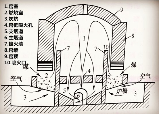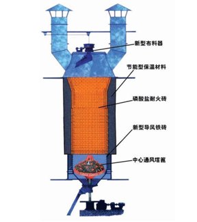 立式窯煅燒工藝:將粉碎后的高嶺土加水及添加劑成型,成型后的物料由窯頂的加料口加入,物料在窯內下移過程中經歷烘干、脫除結構水、燒成等階段,然后由底部側邊出料口卸出。卸出的物料經冷卻后,入磨碎機二次粉碎。得到高嶺土煅燒產品。