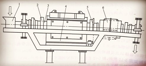 1.進料機構;2.托顴;3.旋轉筒;4.燃燒爐;5.鏈驅動輪;6.冷卻箱