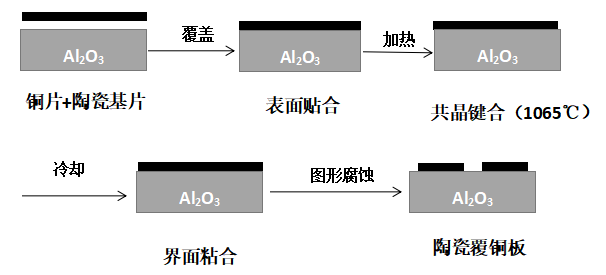 由陶瓷基片與銅箔在高溫下(1065℃)共晶燒結而成,最后根據布線要求,以刻蝕方式形成線路。由于銅箔具有良好的導電、導熱能力,而氧化鋁能有效控制 Cu-Al2O3-Cu復合體的膨脹,使DBC基板具有近似氧化鋁的熱膨脹系數。