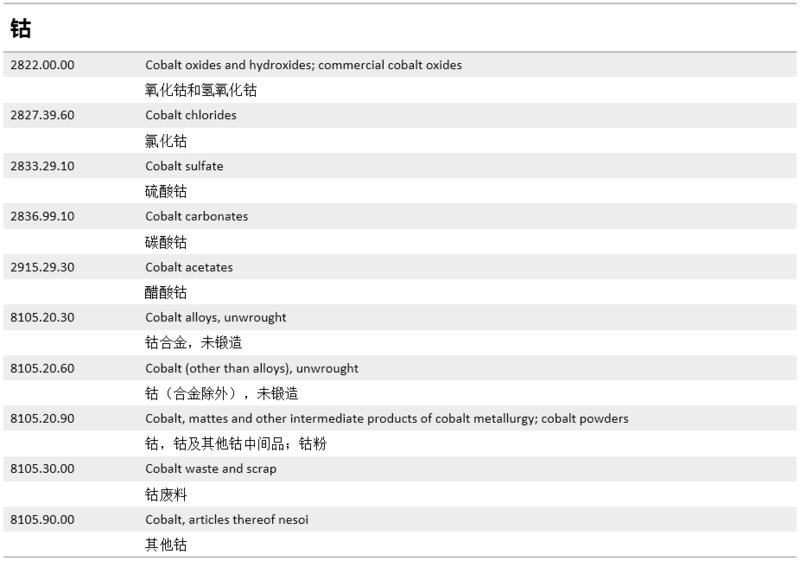鈷方面,中國鈷原料高度依賴進(jìn)口,冶煉及初級加工品出口地也主要集中在日韓,電鈷及鈷粉極少量出口至美國的數(shù)量也可通過調(diào)整供應(yīng)地至海外工廠以及更改出口國等手段應(yīng)對。