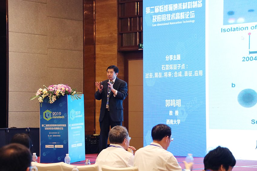 西南大學(xué)化學(xué)與化工學(xué)院郭鳴明教授作了《石墨烯量子點(diǎn):過去,現(xiàn)在,將來;合成,表征,應(yīng)用》的報(bào)告,在報(bào)告中他為我們講述了石墨烯量子點(diǎn)的優(yōu)勢和潛在應(yīng)用領(lǐng)域以及當(dāng)前石墨烯量子點(diǎn)產(chǎn)業(yè)應(yīng)用的局限在哪里,為進(jìn)一步的產(chǎn)學(xué)研攻關(guān)指明了方向。