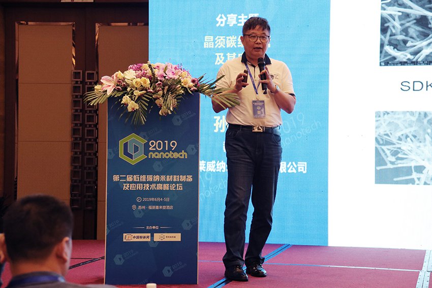 江西克萊威納米碳材料有限公司孫曉剛教授激情澎湃地向我們介紹了他所帶領(lǐng)的科研團(tuán)隊(duì)歷經(jīng)20余年所取得的突破性成果——晶須納米管,該型碳納米管獨(dú)辟蹊徑地?cái)[脫了傳統(tǒng)化學(xué)方法制備的弊病,同時(shí)其優(yōu)良的性能處于國際領(lǐng)先地位,在向我們介紹晶須型碳納米管的物理性質(zhì)的同時(shí),孫曉剛教授也展望了該型碳納米管廣闊的的商業(yè)前景。