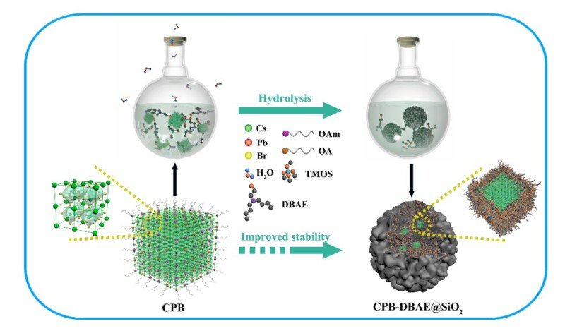 近期,南京大學化學化工學院的李玲玲博士、陳子軒博士、朱俊杰教授等與南京醫科大學的陳蕓教授合作制備了一種集CsPbBr3鈣鈦礦量子點、共反應劑、包覆硅基質于一體的納米復合物,實現了CsPbBr3量子點的高效、穩定ECL。他們通過在CsPbBr3量子點和烷氧基硅烷的混合溶液中引入含不同功能基團的共反應劑,烷氧基硅烷的水解可使共反應劑與CsPbBr3量子點同步嵌入硅基質中。一方面,外圍硅基質可以降低外界環境對鈣鈦礦材料的影響從而提高其穩定性。另一方面,納米復合物內部負載了大量CsPbBr3量子點和共反應劑,二者之間的相互作用及電子傳遞距離縮短,能量損失減少,從而獲得高效穩定的自增強ECL。研究發現,通過改變共反應劑的功能基團種類及數量,可以調控該鈣鈦礦三元納米復合物的ECL效率,最高可達到傳統的三聯吡啶釕/三丙胺體系的10.2倍。該工作借助自增強ECL機制來解決鈣鈦礦納米材料穩定性與ECL電荷傳遞、物質擴散之間的矛盾,為鈣鈦礦納米材料的ECL研究提供了新的思路。