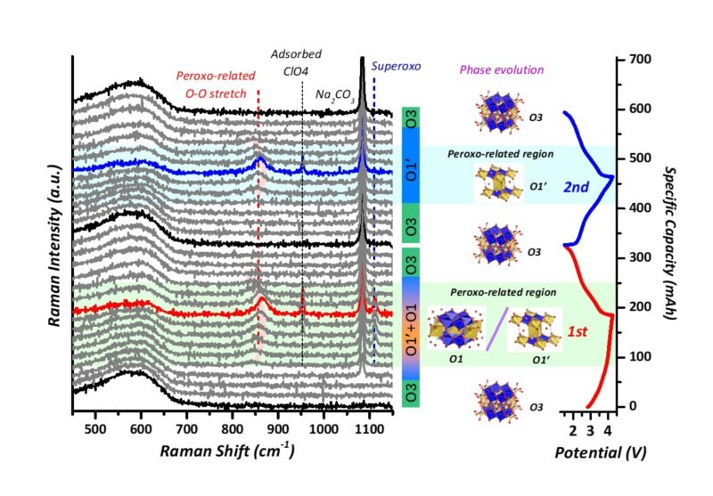 在近期的研究中,研究人員在缺鈉(P2型為主)和富鈉(O3型為主)的層狀結(jié)構(gòu)中均觀測到了陰離子的氧化還原反應(yīng)。而針對層狀富鈉材料的研究一直以來進(jìn)展較為緩慢。首先是現(xiàn)有的關(guān)于富鈉材料的研究,其電化學(xué)反應(yīng)的核心均為釕和銥這類5d元素的貴金屬,這在一定程度上提升了鈉離子電池的生產(chǎn)成本。其次,在報道的層狀富鈉材料中往往存在一定的O2釋放,不利于電極材料的穩(wěn)定循環(huán)。