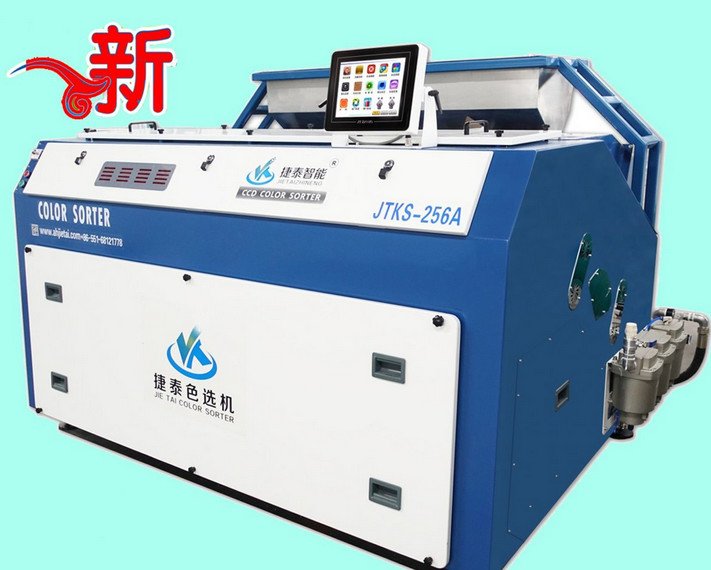 色選機中的光學檢測系統根據礦物次品與合格品在顏色、透明度上的差異,對分選裝置發出指令,用氣嘴對次品噴射高壓氣體,使之從合格品中剔除。礦物40mm以下用人工色選很不經濟。在3~5mm范圍內,色選機的效率很高。色選技術可以用于分選石英礦中,透明石英與乳石英(milky quartz)、薔薇石英(rose quartz)、煙晶(smoky quartz)等有色礦物。