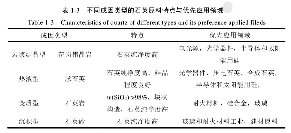 “高純石英原料”與“玻璃硅質原料”都是被賦予經濟意義的以石英礦物為主的工業礦物原料名稱,但二者的礦物加工產品瞄準的應用領域差異明顯,玻璃硅質原料主要用以生產平板玻璃和器皿玻璃,而高純石英原料是用于制造光纖、石英坩堝、石英玻璃、單晶硅和多晶硅等高新技術產品的一類特殊石英資源。高純石英原料更符合現代高新產業對原料極高化學純度的特征要求。