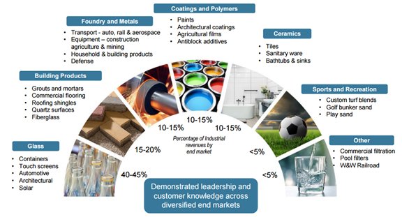 公司廣泛的地理覆蓋范圍提供了不同種類和等級(jí)的礦物。廣泛的產(chǎn)品組合服務(wù)于多樣化的終端市場(chǎng),包括石油和天然氣、玻璃、陶瓷、金屬和鑄件、體育和娛樂、建筑和過濾。