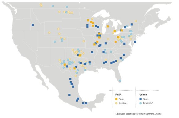 公司擁有超過50個(gè)工廠和94個(gè)運(yùn)營(yíng)終端,其中許多都具備機(jī)組列車能力,可以通達(dá)所有主要的一級(jí)鐵路,公司提供無與倫比的通達(dá)性和可選性,靠近每一個(gè)主要頁巖區(qū),有著業(yè)界最全面、最便捷的分銷網(wǎng)絡(luò)。