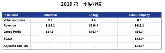 總量為800萬噸,連續(xù)增長(zhǎng)2%,工業(yè)和能源部門增長(zhǎng)相同。由于支撐劑需求下降,2019年第一季度的總體比2018年第一季度減少了13%。