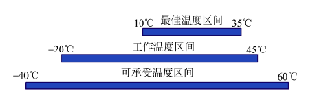 鋰離子電池的最佳溫度區間、工作溫度區間和可承受溫度區間分別為10~35℃、-20~45℃和-40℃~60℃。10~35℃這一溫度區間為鋰電池的理想工作狀態。在-20~45℃區間內鋰電池壽命衰減較小,仍能夠正常工作。然而,當溫度在-20~-40℃內時,電解液可能會凝固,阻礙鋰離子的流動,導致阻抗增加,電池容量明顯下降。當溫度超過60℃時,鋰離子的化學特性開始變得越來越不穩定,電池內部有害化學反應速率較高,可能會破壞電池,嚴重時會發生事故。