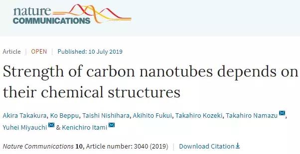 近日,來自日本名古屋大學、京都大學、愛知工業大學和兵庫縣立大學的科研團隊合作,首次報道了實驗測量的單個結構定義的單壁碳納米管的極限拉伸強度。其強度取決于納米管的手性結構,其中小直徑、近扶手椅狀納米管具有最高的拉伸強度。這種觀察到的結構依賴關系可以通過內部結構依賴的原子間應力得到全面的理解,它集中在真實納米管中不可避免存在的結構缺陷上。這些發現突出了在試圖制造最強材料時應該合成的目標納米管結構。該研究成果以題為“Strength of carbon nanotubes depends on their chemical structures”的論文發表在《Nature》子刊《Nature Communications》上(見文后原文鏈接)。