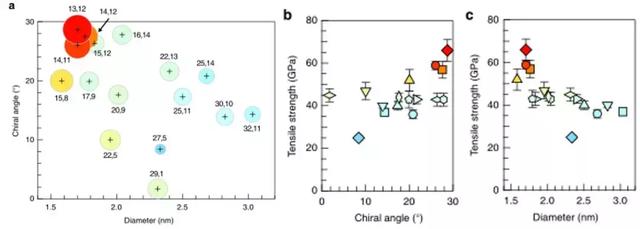 圖3. 極限拉伸強度的手性依賴性