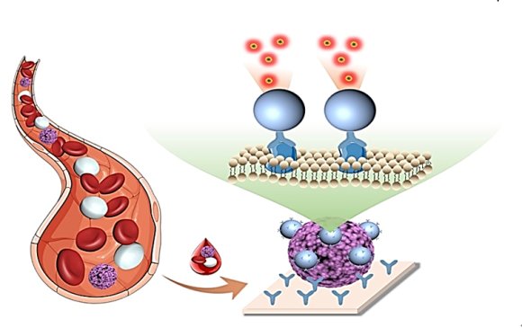 中國粉體網訊 循環腫瘤細胞(circulating tumor cell,CTC)是從腫瘤原發灶或轉移灶脫落并游離到外周血中的一類腫瘤細胞,其容易引發腫瘤復發或轉移并顯著增加腫瘤患者的治療難度和死亡風險。因此,CTC的有效檢測對腫瘤的早期診斷、預后判斷以及療效監控等具有重要意義。然而,由于CTC在血液中含量極低,傳統的基于“富集-檢測”的兩步分析法存在操作繁瑣、靈敏度低、易產生假陰性等不足。如何實現全血中CTC的高靈敏直接檢測是腫瘤診療領域的一個重大挑戰。