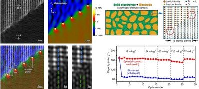 中國粉體網(wǎng)訊 中國科學技術大學教授馬騁課題組和中國科學院院士、清華大學教授南策文團隊在鋰電池固態(tài)電解質的研究中取得新進展。研究者使用球差校正透射電鏡對固態(tài)電解質和電極材料的界面進行觀測,發(fā)現(xiàn)富鋰層狀結構的正極和鈣鈦礦結構的固態(tài)電解質之間可以形成外延界面。利用這一現(xiàn)象,研究者制備了倍率性能可與傳統(tǒng)漿料涂覆正極相比的復合正極,為克服固態(tài)電池中電極-電解質接觸差這一瓶頸提供了新思路。相關研究成果以Atomically Intimate Contact between Solid Electrolytes and Electrodes for Li Batteries 為題發(fā)表在Cell Press旗下的材料學期刊Matter上。論文第一作者是中國科大碩士研究生李富振。