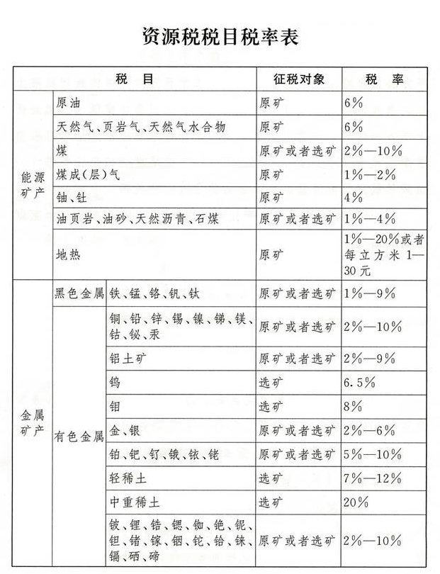 新資源稅法2020年9月1日起實施 輕稀土選礦稅率為7%-12%