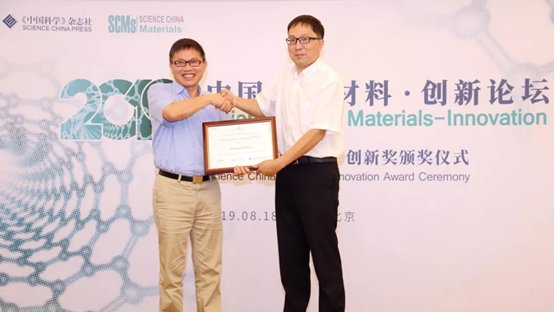 Science China Materials主編李亞棟教授在第1屆中國科學材料•創新論壇(The1stScienceChinaMaterials-InnovationForum)開幕式上向段鑲鋒教授頒發了獲獎證書。