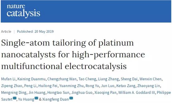 2019年5月,段鑲鋒/黃昱Nature Catal.:單原子Ni修飾,大幅提高Pt質量比活性!