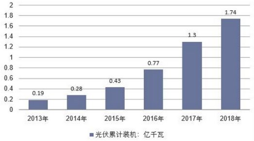 2013-2018年我國(guó)光伏累計(jì)裝機(jī)統(tǒng)計(jì)