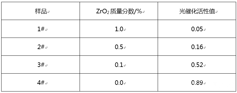 表2 TiO2在不同ZrO2包覆量下的光催化活性值