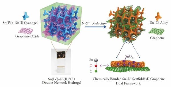 中國粉體網訊  德克薩斯大學奧斯汀分校余桂華團隊提出一種雙網絡凝膠還原策略,將框架結構合金負極材料與三維石墨烯相結合,形成物理交聯與化學鍵合一體化的雙框架材料,該石墨烯基雙框架材料也因此表現出快速且穩定的儲鋰行為。