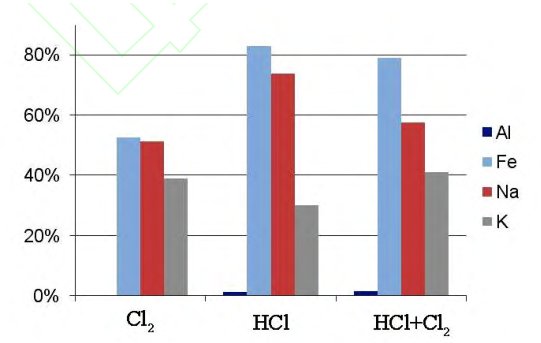 根據氯化劑的種類可分為固態氯化焙燒和氣態氯化焙燒。固態氯化焙燒所使用的氯化劑一般為NaCl、CaCl2、NH4Cl。氣態氯化焙燒所使用的氯化劑一般為Cl2、HCl。